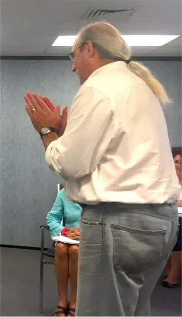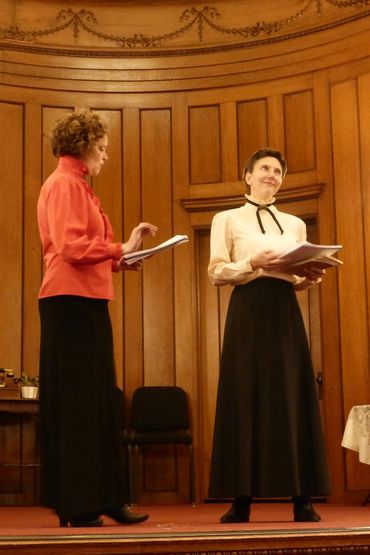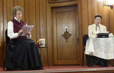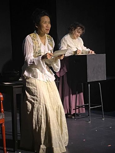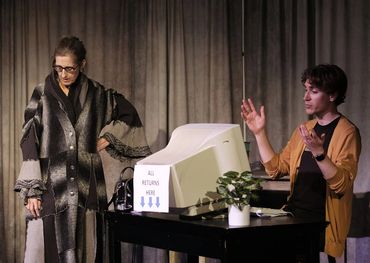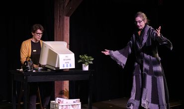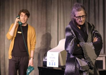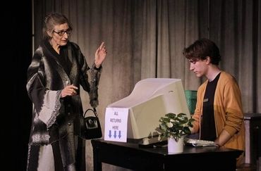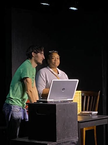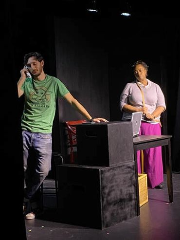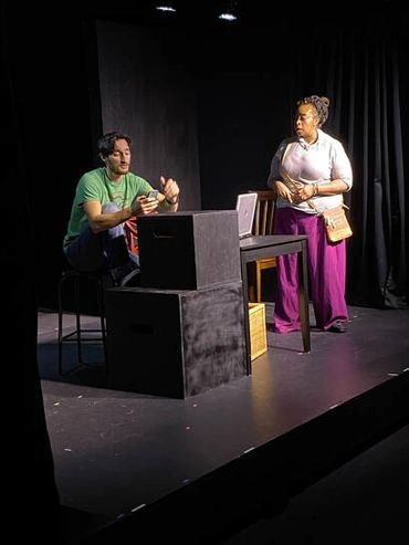 Rehearsal for "Meet Me in the Lobby." Gina Pulice as Flossy and Norman Allen as Parks.