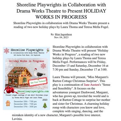 I'm back in the studio with host Deborah Gilbert and co-founder of Shoreline Playwrights Teresa Mella Fogel.